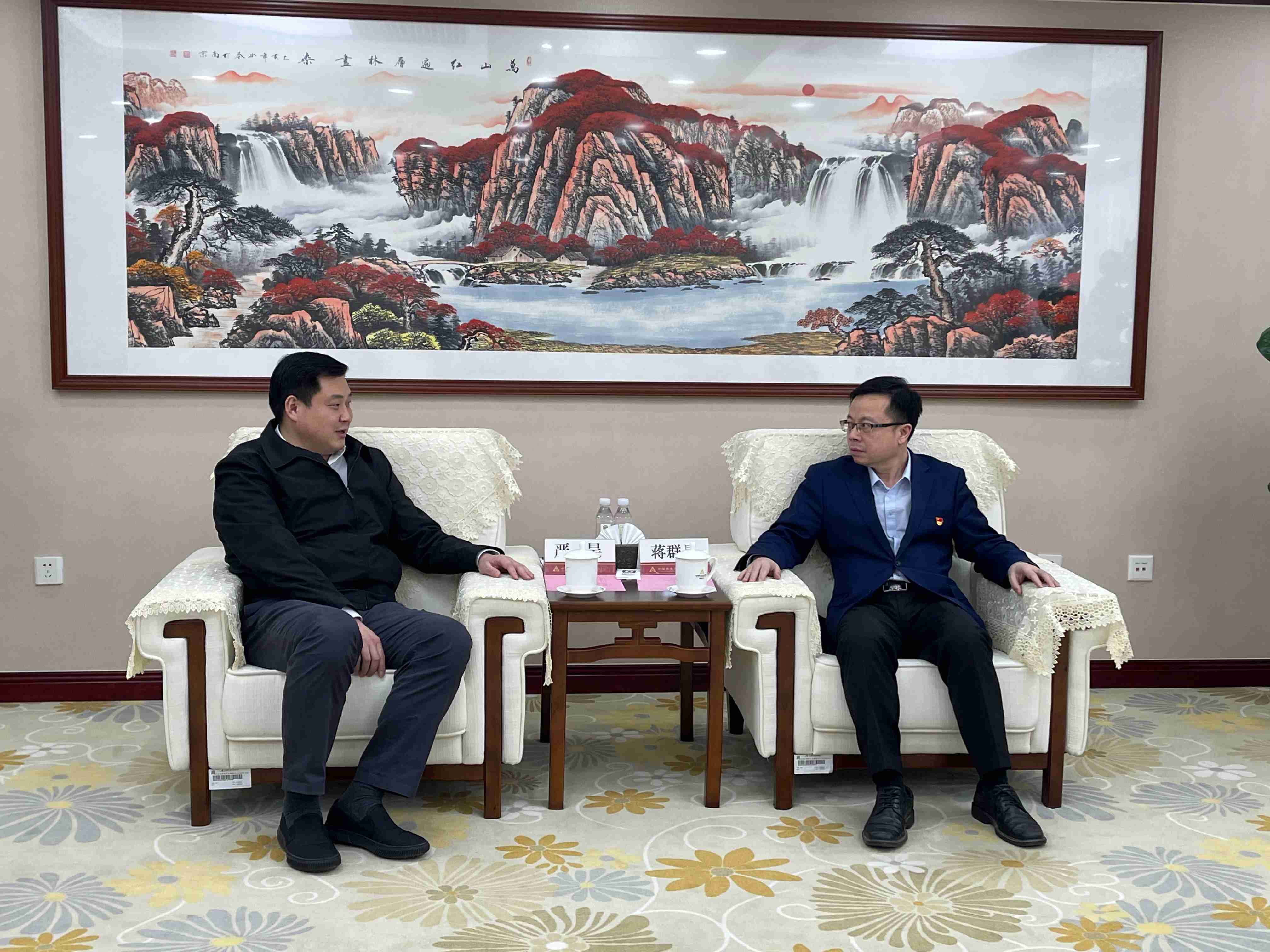 3月30日,嚴(yán)昊主席在烏魯木齊同中國農(nóng)村發(fā)展銀行新疆分行黨委書記、行長蔣群星會談,雙方暢敘合作情誼、共啟合作新篇。