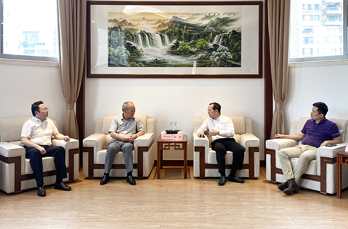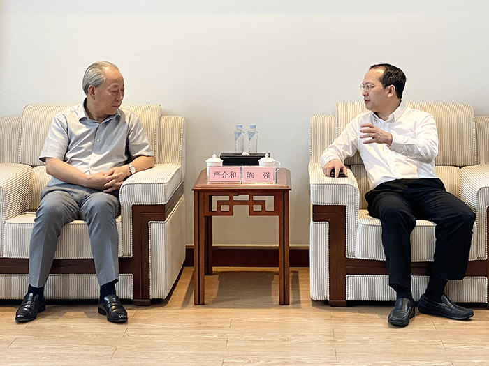 7月5日下午,嚴介和理事長同廣州城投黨委書記、董事長陳強會談,雙方進一步增加了解,增強理解。莊嚴系CEO、港珠澳建設董事局主席金亮陪同。